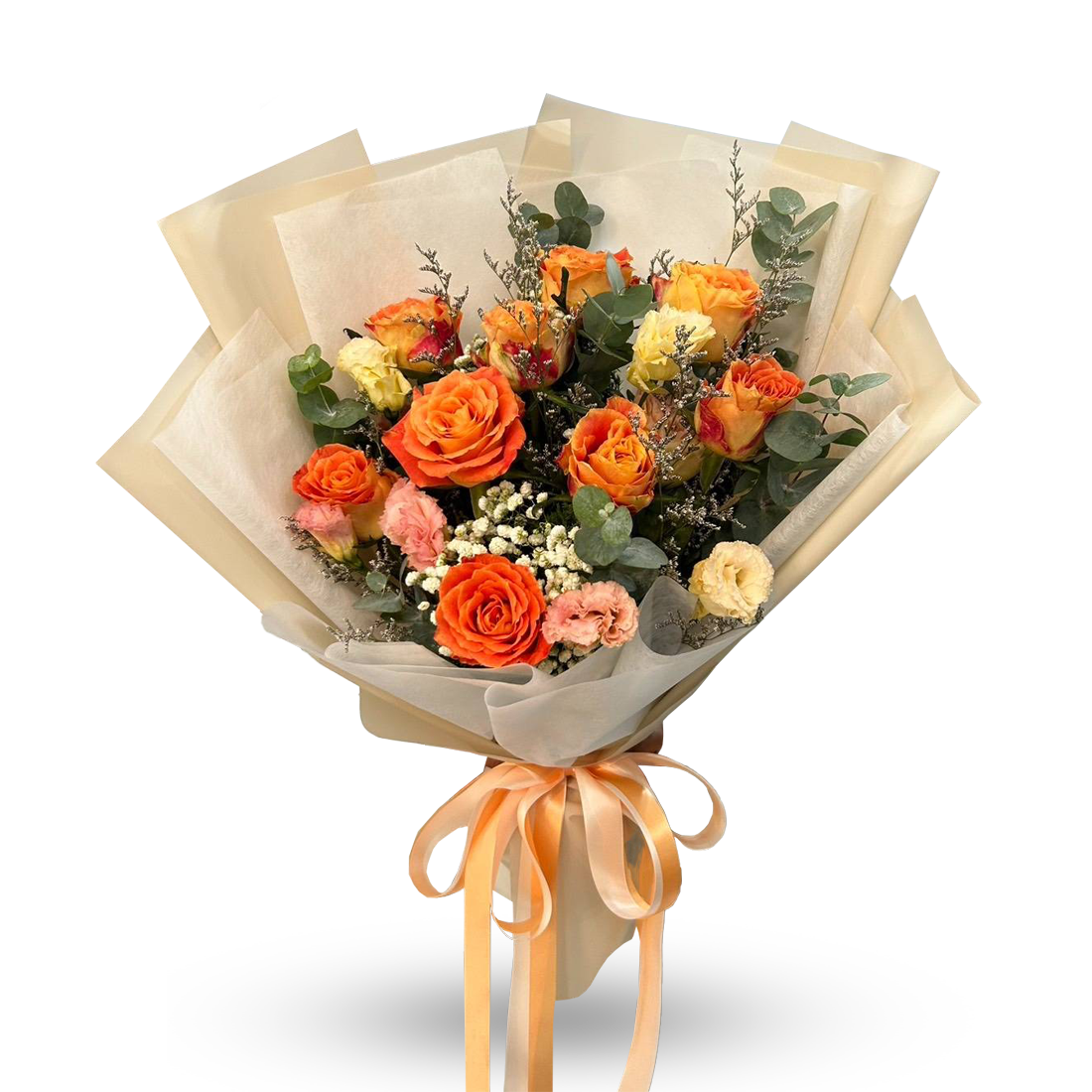 Go to the shopช่อดอกไม้ "Sweet Pumpkin" โดดเด่นด้วยโทนสีส้มอันสดใส ประกอบไปด้วยดอกกุหลาบสีส้ม ไลเซนทัสสีส้ม แซมด้วยดอกยิปโซสีขาวบริสุทธิ์ เพิ่มความสดชื่นด้วยใบยูคาลิปตัสที่มอบความเป็นธรรมชาติ ห่อด้วยกระดาษสีส้มสดใส ช่วยให้ช่อดอกไม้ดูโดดเด่นและสวยงาม เหมาะสำหรับการมอบให้คนพิเศษในโอกาสพิเศษต่าง ๆ หรือเพื่อเพิ่มความอบอุ่นสดใสให้กับวันของคุณ